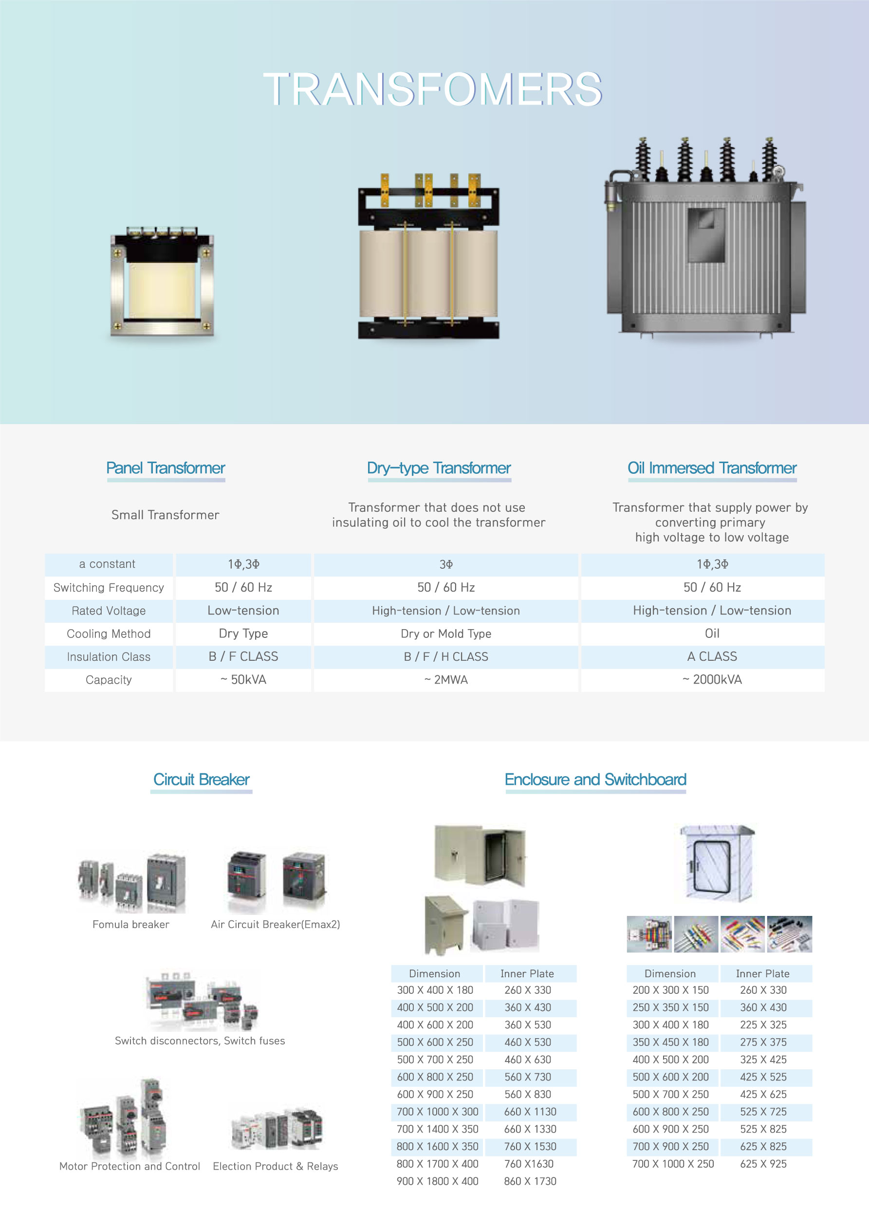 For transformers, we can supply oil immersion transformers, dry-type transformers, auto-transformers, and high-frequency transform-ers.