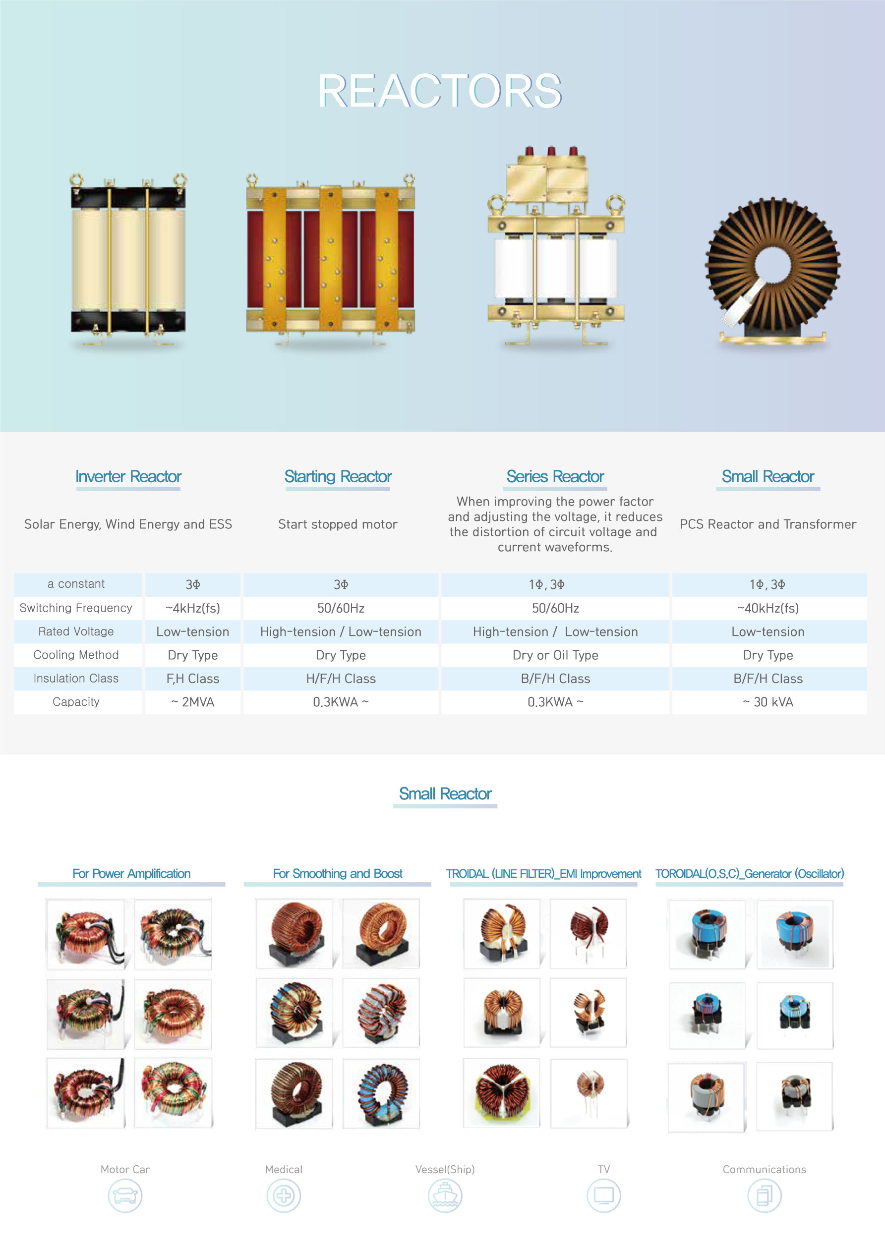 Our company specializes in reactors for inverters applied to new and renewable power generation systems,